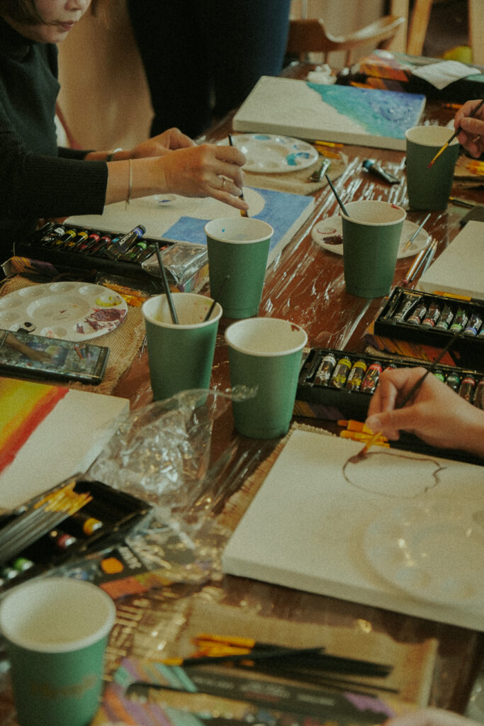 During the workshop, you can see everyone’s focus was glued on their artwork. With each dab of their brush, each sweep, each smear of paint, it slowly portrays an image. Each color represents their current emotion which is illustrated in canvas.